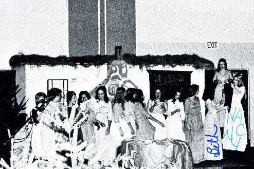 Hazen High didn’t have an auditorium or theater. Budget cuts prevented that. The school has one now, but back in the day we had to do the play in the gymnasium. This, of course, presents problems because there’s no wings, no back stage. Everything is there all the time and there’s no way to fly things in and out for set changes.