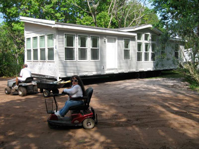 Getting the house to the lot was half the fun. The three pieces it came in wouldn’t fit down the road as a large oak was arching over it, as oaks in the south are prone to do. Finally, the neighbor let us cut through his yard. Otherwise we would have had a house, a yard, but no way to get the two to meet.